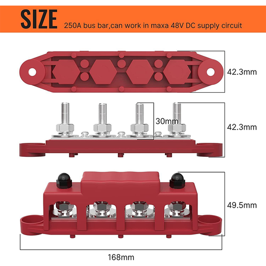 250A Negative Bus Bar Black and Red