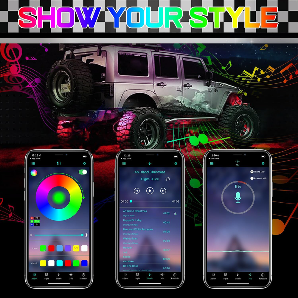 - More Stable Connection - The Rock Light's controller has a built-in automotive grade chip for easier, faster, and more stable Bluetooth connection, solving the headache of unstable and slow connections.