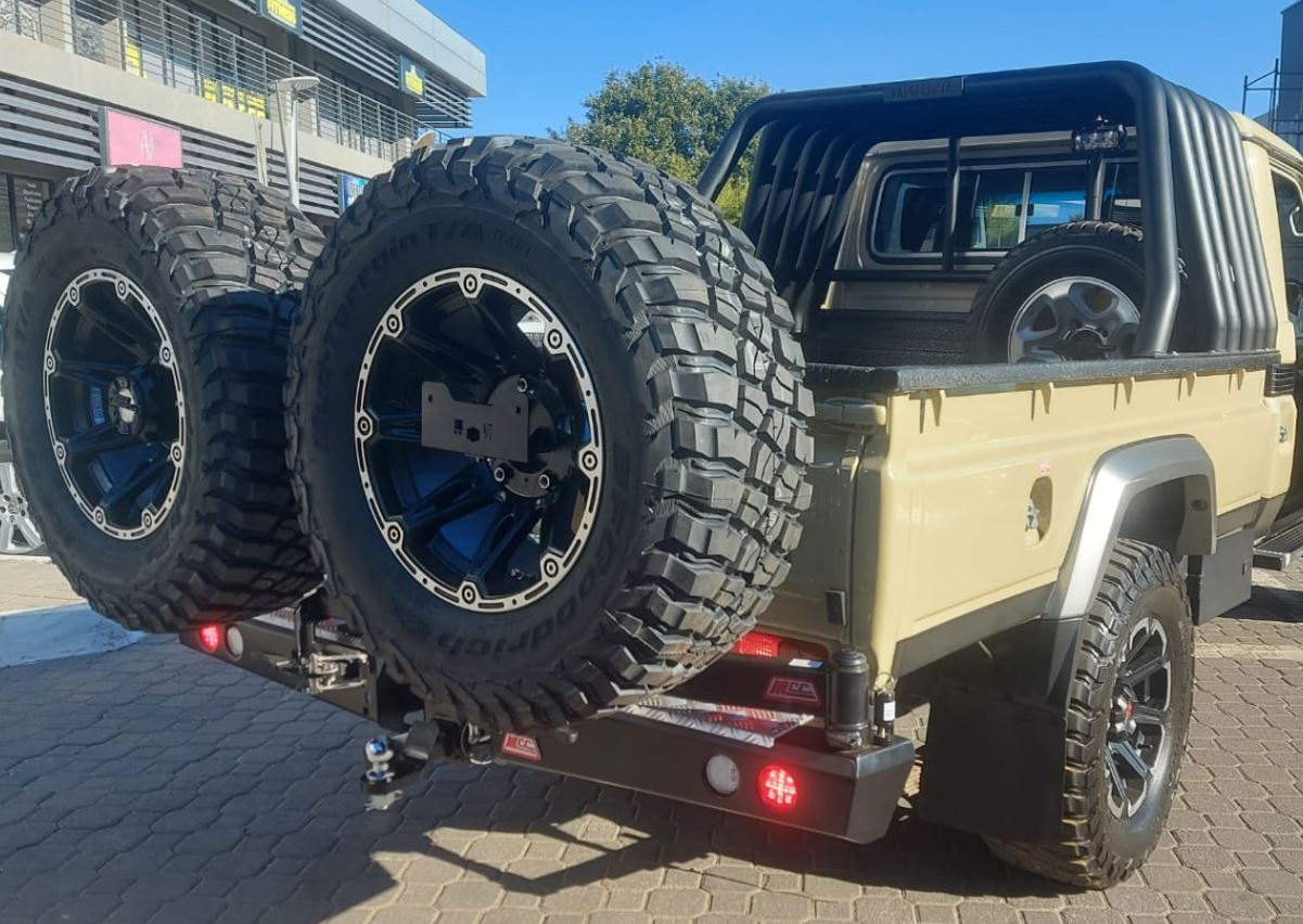 - Dual Spare Wheel Carriers: Securely mount two full-size spare wheels—essential for remote travel
