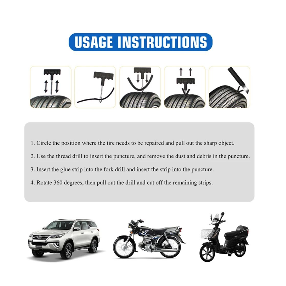 Be prepared for unexpected tire punctures with this compact and reliable Roamer Mini Tyre Repair Kit Steel 11-Piece Flat Tire Plug Kit. Housed in a durable blue plastic carrying case, this 11-piece set includes all the essential tools needed to quickly and effectively repair tubeless tires on cars, motorcycles, ATVs, trucks, and more.